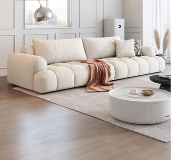 French Cream Style Fabric Puff Sofa Set Double Piano Keys Design for Small Apartments Straight Row Simple Style Sponge Filling